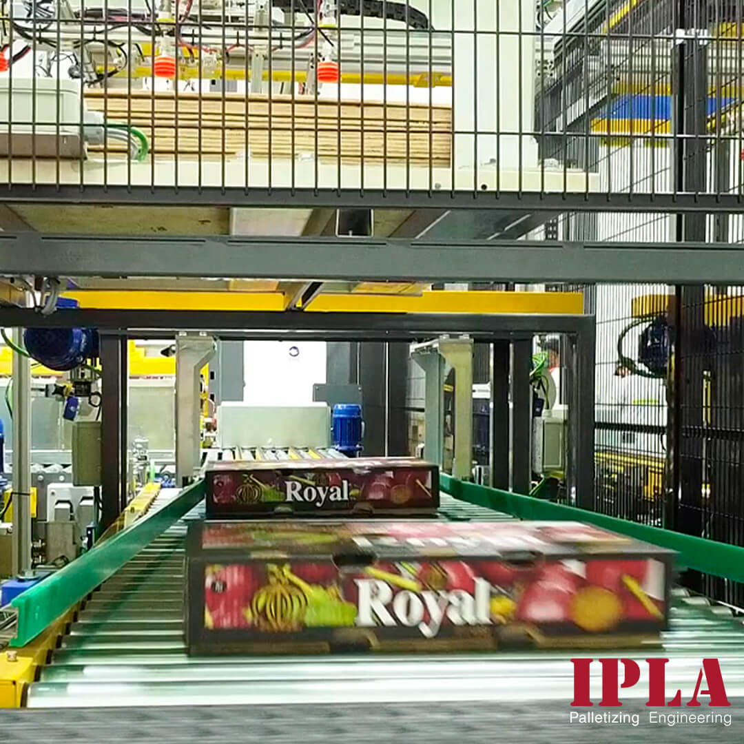 IPLA counts with different solutions to transport and handle the boxes from the sealing area to the palletising area. With its conveyor systems, the boxes will arrive from different lines to the merge, a machine with a label reading system that will unify the boxes into the same line. Afterwards, the sorter will read and classify all the boxes arriving, to the different exits where the palletisers are located. Depending on the number of boxes arriving, IPLA counts with two types of sorters, one that can process up to 60 boxes per minute and another one that can handle up to 120 boxes per minute. There are many reasons why having a merge and sorter system. You will have less reading errors thanks to the artificial vision camera system used by IPLA. With the management software developed by IPLA, you will have real-time production information. The box deviation without punching offers optimal fruit handling. These systems are robust and easy to maintain and you will have the installation ready for future expansions.